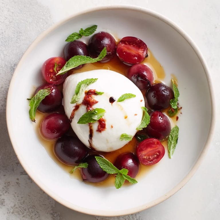 The base of this salad is stable enough that you can play around without breaking it. I've added toasted walnuts for crunch, switched in blackberries during their season, and even experimented with a drizzle of honey to deepen the sweetness. The one thing I've learned not to mess with is the burrata itself—it's the anchor, and the rest orbits around it.