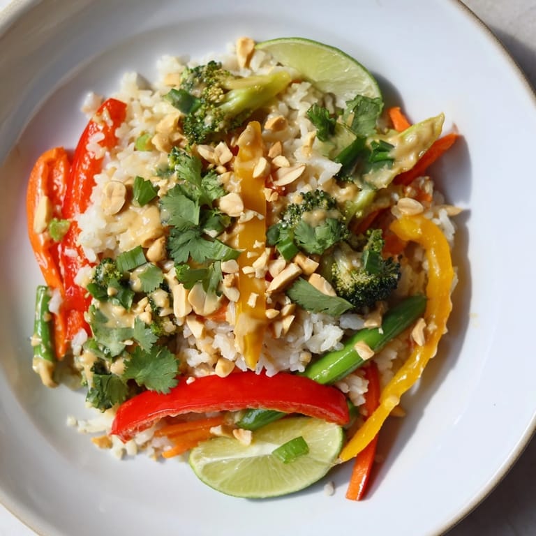 Save This Thai Peanut Veggie Stir-Fry Rice is a fast favorite when I want something both nourishing and packed with bold flavor. Crunchy vegetables and fluffy rice get tossed in a creamy spicy peanut sauce that always hits the spot. It is my go-to for quick weeknight dinners or when friends drop by last minute since the whole meal comes together in just over half an hour.