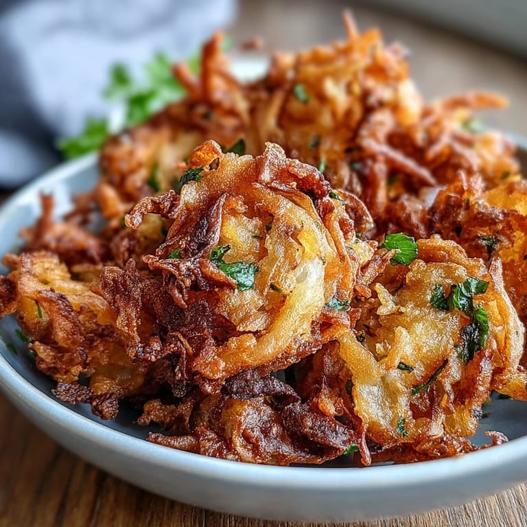 Save My neighbor brought over a batch of onion bhaji from the Indian market down the street, and I ate half of them standing at the kitchen counter before feeling guilty about the oil. That's when I wondered if my air fryer could handle them, and after a few experiments, I realized these golden fritters were even better when made this way, with the same crispy exterior but without the heaviness that made me reach for water afterward.