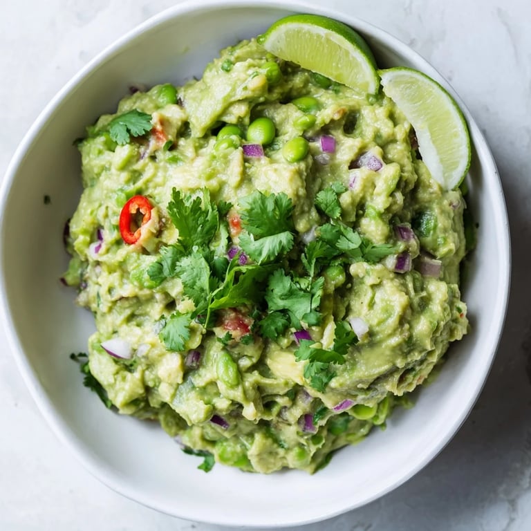 Save I discovered edamame guacamole by accident one afternoon when my regular avocado supply ran low and I had a bag of frozen edamame thawing on the counter. That small green moment of improvisation turned into something I now crave—creamy, protein-packed, and somehow brighter than traditional guac. The first person I served it to asked if I'd added some secret ingredient, and honestly, it was just necessity dressed up as genius.