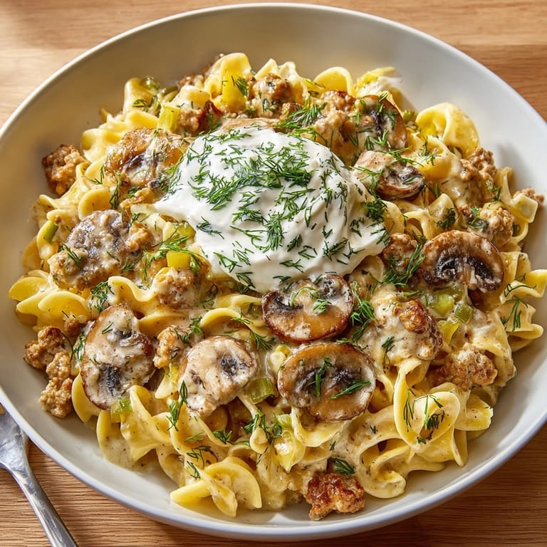 Save This tangy one-pot turkey stroganoff has become my weeknight salvation when I crave comfort food but don't want the traditional heaviness. The unexpected pickle-ranch combination creates a creamy, zesty dish that transforms humble ground turkey into something truly craveable.