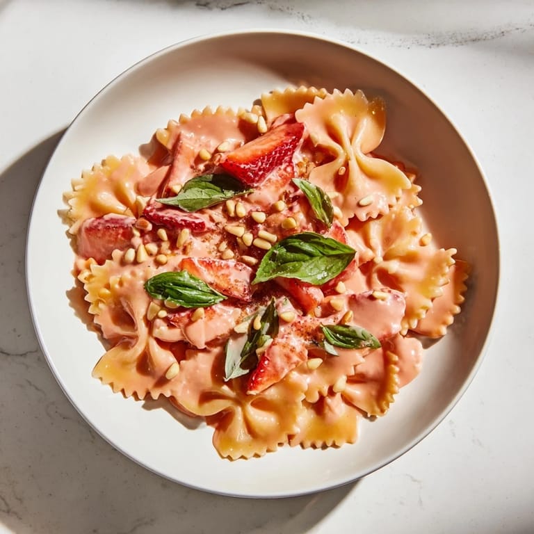 Save This pasta reminds me that the best recipes often arrive by accident, born from what's in your kitchen and a willingness to ignore what you think food should be. Make it when strawberries smell like summer and you have time to taste what you're cooking.