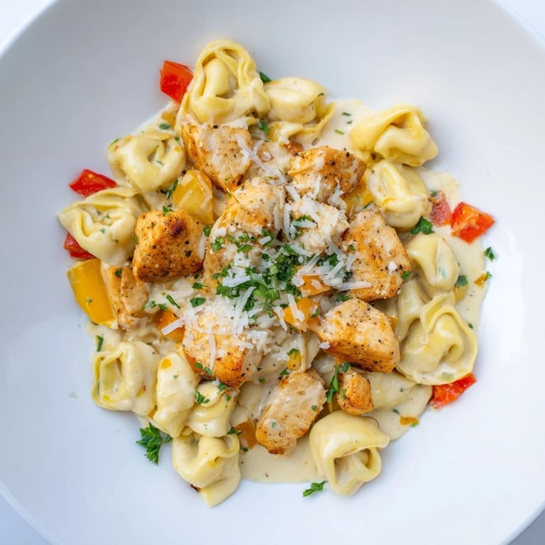 Save A vibrant and flavorful pasta dish featuring tender chicken, cheesy tortellini, and a creamy Cajun garlic Parmesan sauce. Perfect for a quick weeknight meal with a spicy kick.